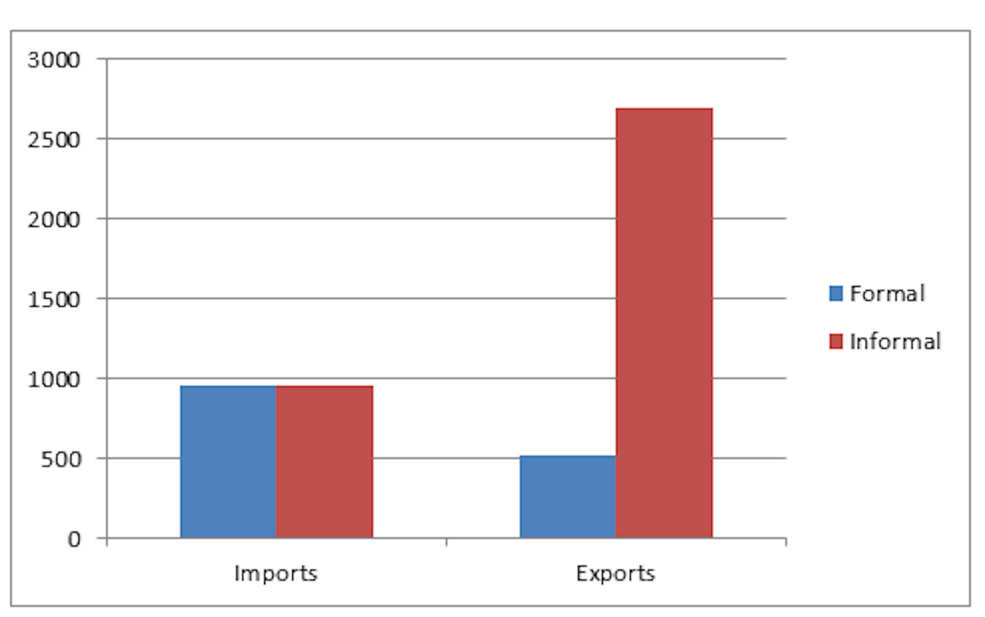 Sin embargo, gran parte del comercio transfronterizo se da de manera informal. O esquiva completamente las aduanas, o pasa por los puestos oficiales, pero sin registro alguno. Es difícil medir el comercio informal. La mayoría de los estudios se han basado en estimaciones a partir de encuestas parciales o ejercicios de contabilidad, y concluyen que una fracción significativa del comercio regional africano es de naturaleza informal: del 30 al 40%.