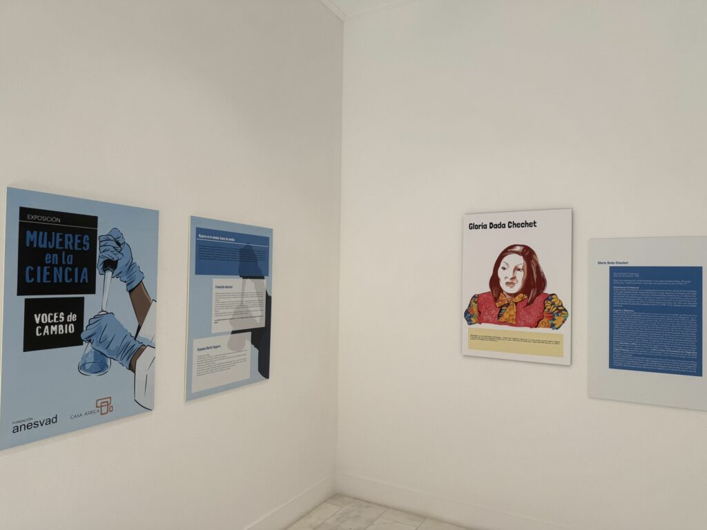 Imagen de parte de la exposición «Mujeres en la ciencia. Voces de cambio», de Fundación Anesvad. Imagen: © Casa África / Fundación Anesvad